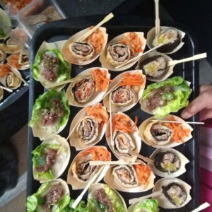 Korean Fingerfood for the opening of the exhibition of Carl de Keyzer. For this special event I ve put on my 40 years old korean dress(hanbok) ,